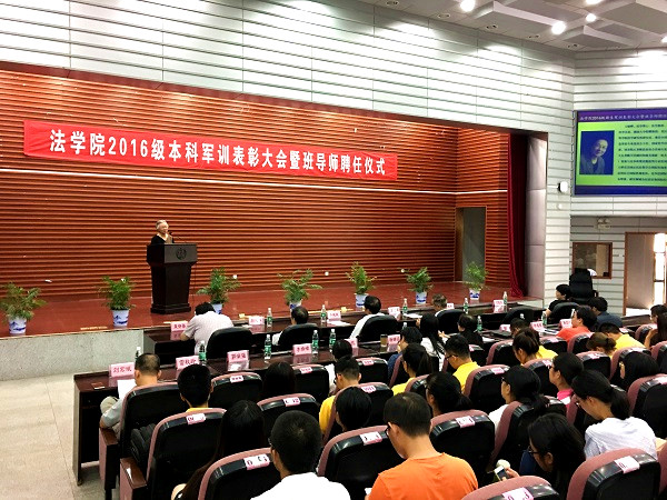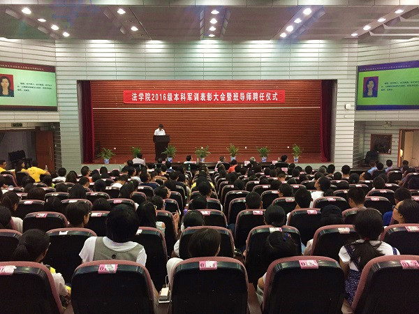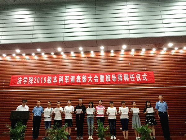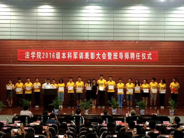 2016级新生军训表彰大会暨班导师聘任仪式在报告厅隆重举行。