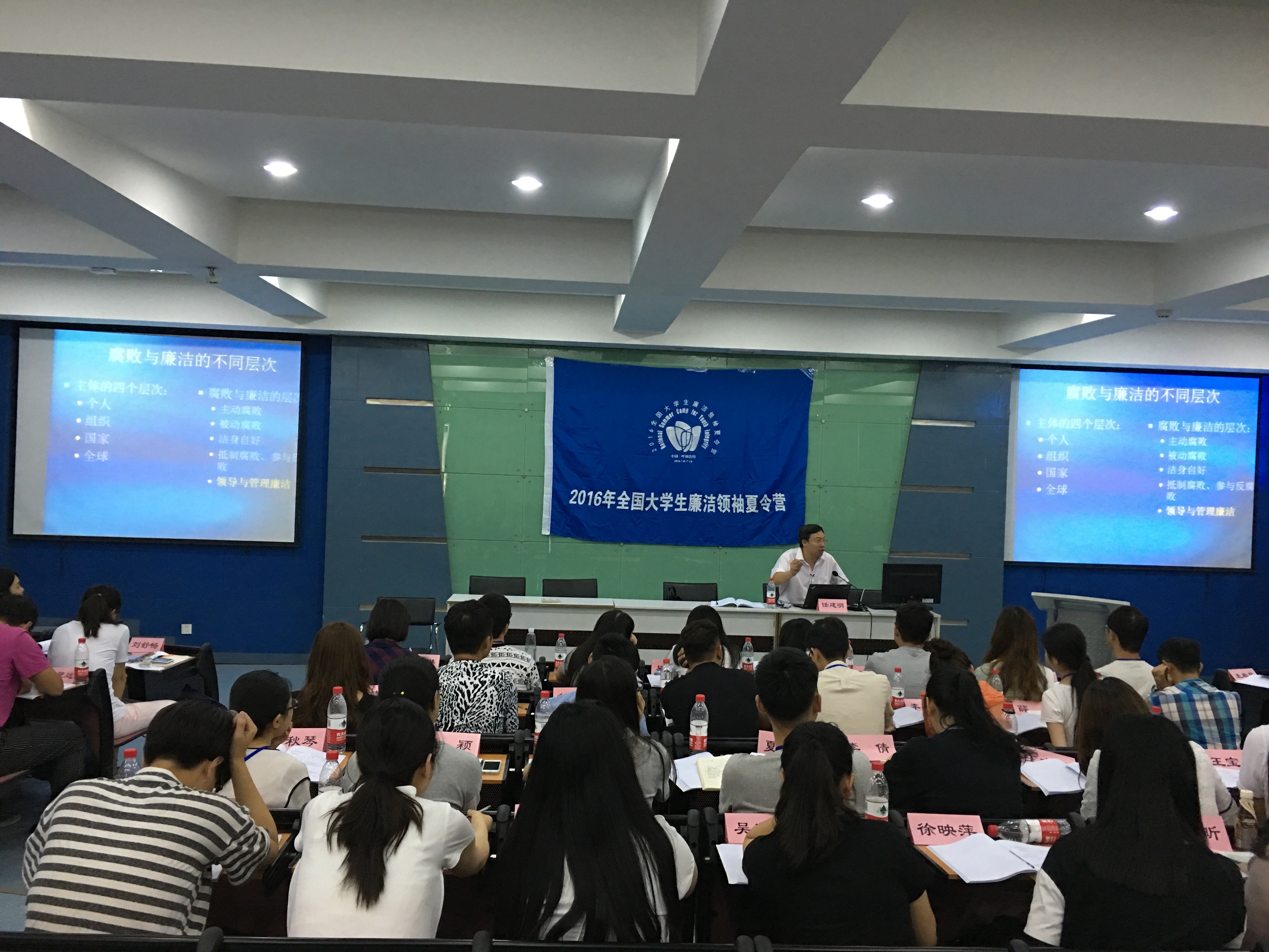 在为期一周的夏令营时间里,北京航空航天大学任建明教授作了题为“历史的教训与启示”的反腐败形式报告,并以医药购销回扣、中国足球腐败案、非常冲突等案例,诠释了腐败的形式、后果及其实质,探讨了不同情境、不同职业中抵制腐败、保持个人廉洁、领导廉洁和管理廉洁的策略、工具和方法。五楼自拍