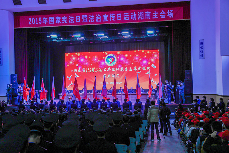 活动以国家宪法日宣誓仪式拉开序幕,全体起立,千人共同选诵宪法条文。随后,省领导宣布2014年度湖南省最具影响力法治人物、法治事件获奖名单,并为2014年度最具影响力法治人物、法治事件颁发奖杯和证书,并同时宣布启动2015年度湖南省最具影响力法治人物、法治事件评选活动。紧接着,活动为湖南省“法润三湘”公共法律服务志愿者组织授旗,并启动了“你学法,我送票,天下凤凰任你游”大型普法创新活动。最后,省领导发表了国家宪法日活动重要讲话。此次活动在气氛热烈的宪法知识有奖抢答活动中顺利闭幕。