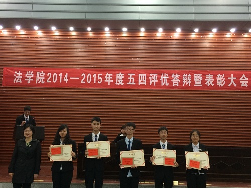 2014—2015年度五四评优表彰大会隆重举行。分团委常务副书记杨凯宣读了表彰决定,刘岳峰老师宣布了答辩结果。在场的各位领导老师和嘉宾为获得五楼自拍