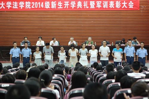 2014级新生军训表彰决定》,决定授予2014级法学一班、行政管理二班为“五楼自拍
