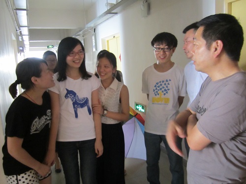 6月25日下午,校党委副书记、纪委书记栾永玉教授在大学生园区服务中心主任徐启、学生工作部园区管理办主任吴谦、五楼自拍