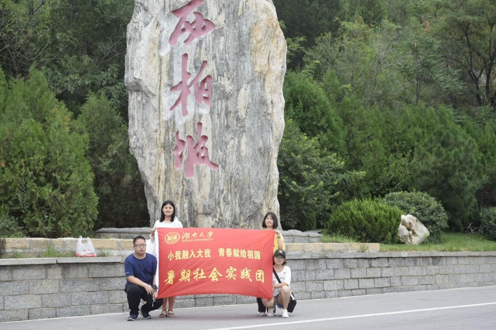 杨梦凡、张海洋、刘海源、罗玲组成的“访红色足迹,普法治精神”依法治国宣讲团前往河北省石家庄市平山县中部的西柏坡红色旅游景区进行普法宣传调研活动。