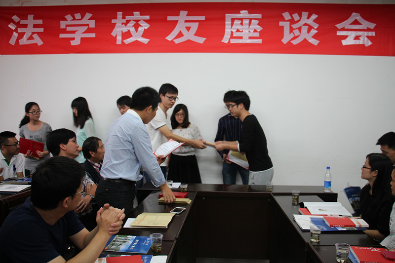友会副会长宋春明为获得奖学金的学生颁发奖学金和荣誉证书。同学们排着整齐的队伍,从宋春明学长的手中接过奖金和荣誉证书。奖金和荣誉证书是同学们努力学习的表现和奖励,对于督促获奖同学更加努力、激励广大法学学子继续努力的作用是巨大的。