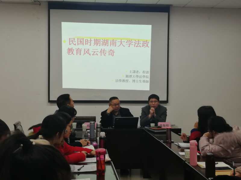 教授,博士生导师程波担任主讲人。程波教授著作有《中国近代法理学(1895-1949)》、《法意发凡:清末民国法理学著述九种》等,论文有《湖南法政教育的早期展开和湖南法政教育先驱者事略考》,对近代湖南法学教育史深有研究。五楼自拍