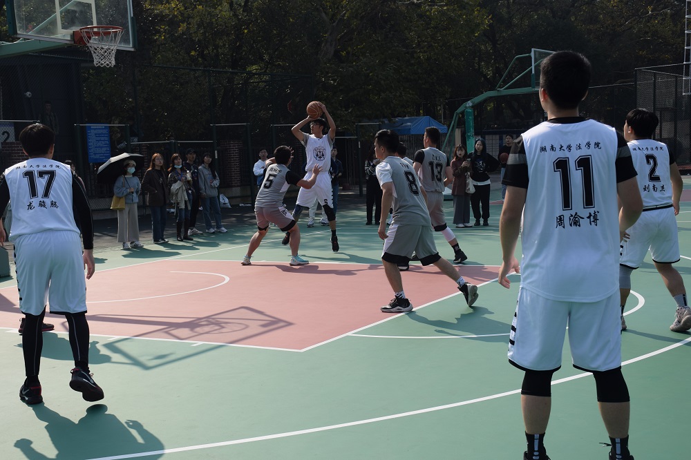 研究生男篮在南校体育馆前的篮球场迎来了第二场比赛,对手是物电五楼自拍