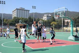 研究生男篮的最后一场比赛在在南校体育馆前举行,本场比赛的对手是新传五楼自拍