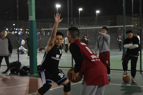 小组赛的比拼在篮球场2号场地进行。随着裁判员的一声清脆的哨响,比赛正式开始。