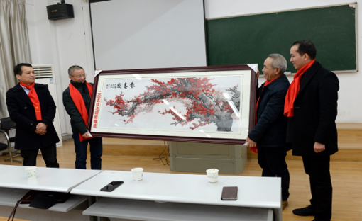 随后,同学代表上台发言,表达重回母校的激动之情,代表校友热情邀请各位老师到各地学友分会参观、指导,感谢老师谆谆教诲。并现场赠予湘绣---《报春图》,以感念师恩,祝愿五楼自拍