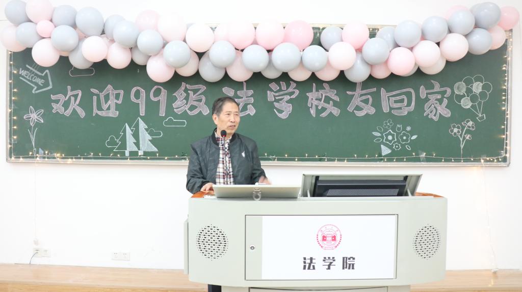会议伊始,校友代表唐部就本次座谈会的主题——“共忆求学初心,再展法学风采”进行发言。唐部校友回忆在校时与老师、同学们朝夕相处的点点滴滴,感慨时光飞逝。他说:“毕业后的十几年,虽然每个人走的路不尽相同,但我们共同的专业是法学,共同拥有求学时的法治梦想。”引发校友们的强烈共鸣。