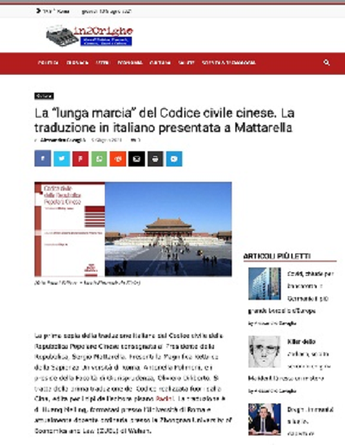 多家意大利媒体对此进行了报道,“这是中国民法典的第一个意大利语译本,由意大利前司法部长奥利维耶罗·迪利贝尔托组织,是中意文化交流的合作典范,是罗马第一大学和中南财经政法大学的最新合作成果,也是两国践行一带一路倡议的重要智识支撑。”