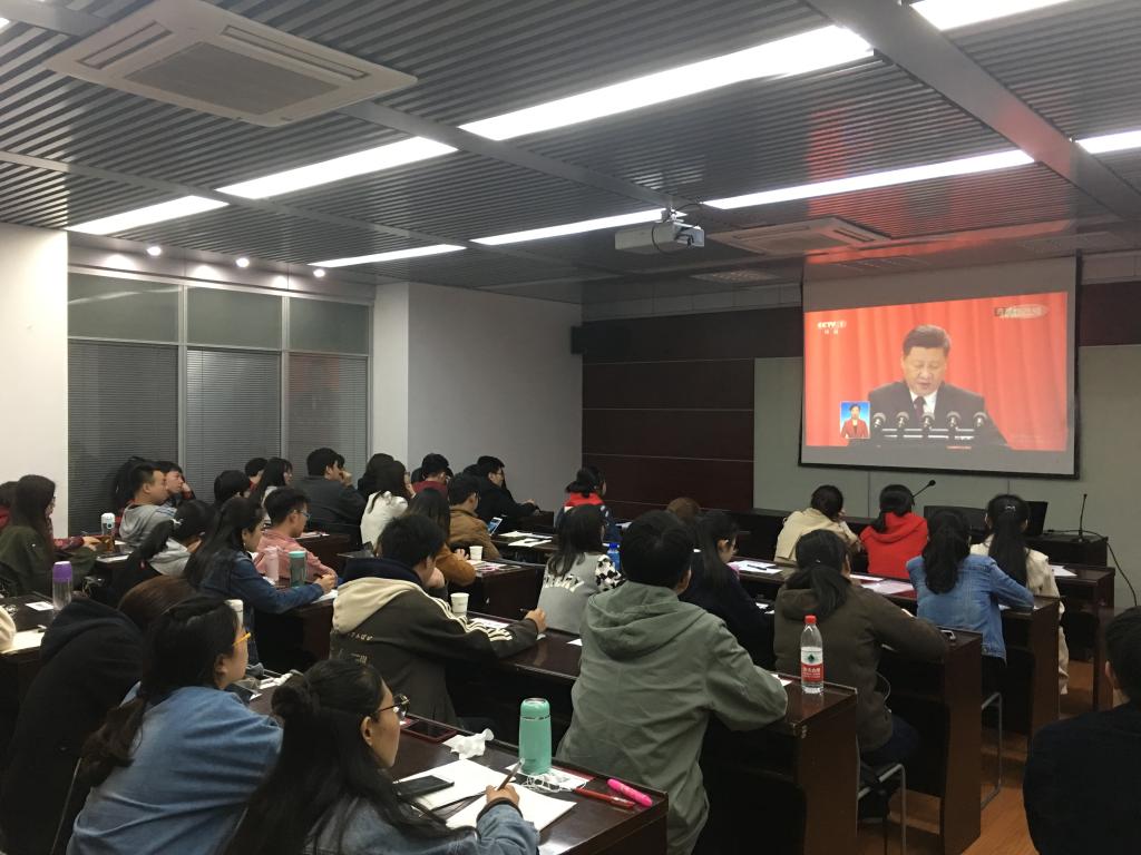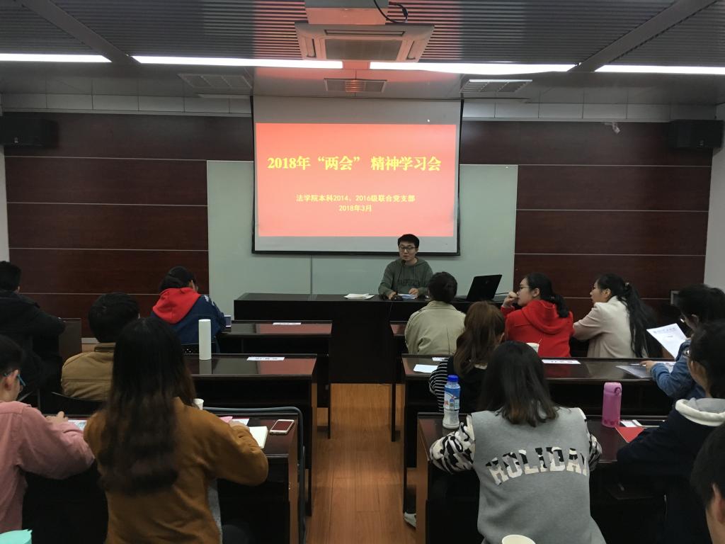404教室召开党员学习会议,专题学习全国“两会”精神和习近平总书记在十三届全国人大一次会议闭幕会上的重要讲话精神。会议由党支部书记、辅导员杨凯老师主持,在校的党支部成员和入党积极分子40余人参加学习活动。
