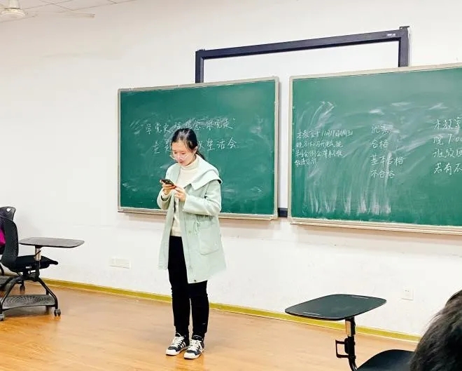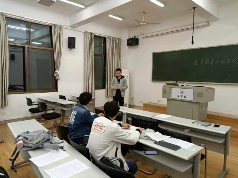 法学1902班团支部组织生活会和团员教育评议会于2021年11月19日晚七点在综合楼301教室举行,会议由团支书赵玲羽主持。