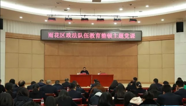 3月23日,雨花区委书记、雨花区政法队伍教育整顿领导小组组长张敏以“以正视问题的自觉、刀刃向内的勇气,推动教育整顿工作取得扎实成效”为题,为全区政法干警讲授专题党课。雨花区委常委、区委政法委书记、区政法队伍教育整顿领导小组副组长兼办公室主任王明玖主持会议,相关区领导、相关部门单位负责人以及雨花区人民检察院实习生临时党支部全体党员参加。
