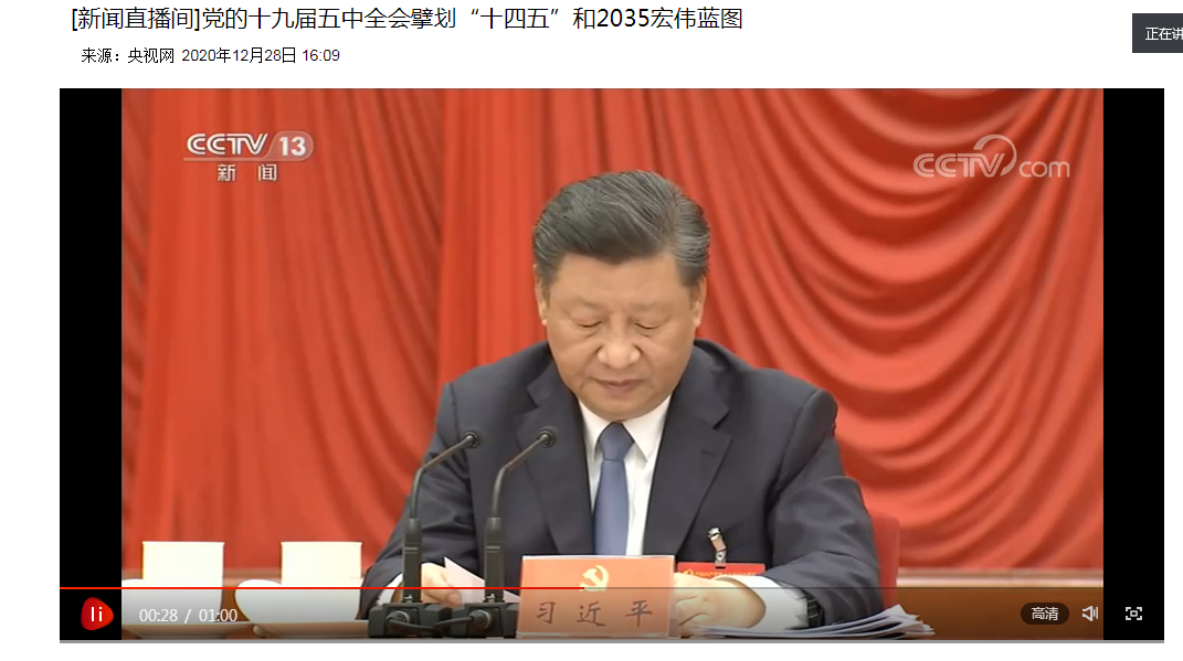会议开始后,党支书为大家播放了来源与央视网2020年12月28日 的一段“[新闻直播间]党的十九届五中全会擘划“十四五”和2035宏伟蓝图的视频”,带领全体同志一起会议本次大会的基本情况。