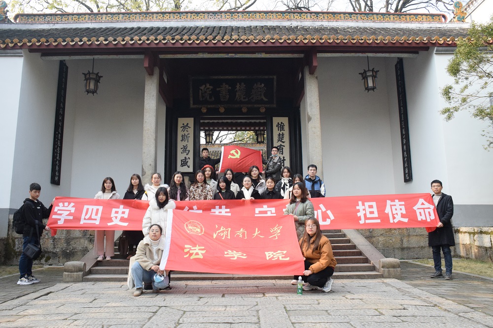 在岳麓书院,研会同学开展了宪法宣誓活动。张键同学首先向研会成员们分享自己的感受:“习近平总书记在参观岳麓书院时,教导我们做中华优秀传统文化的传承者和弘扬者,作为一名法学生,我们要不忘初心,牢记使命,尊重宪法和法律权威,努力成为中国法制建设的栋梁之材。”随后,他带领大家列队整齐,庄严宣誓。同学们通过铿锵有力的誓词,表达了学习宪法、忠于宪法、维护宪法的决心,并立下为建设法治中国不懈奋斗的坚定誓言。