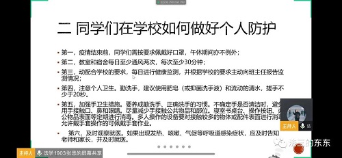 此次班会,不仅加强全体同学的防疫抗疫意识,更加强学生的爱国主义精神,同时,也一定程度上督促学生的线上学习,是所有同学为开学做好准备。