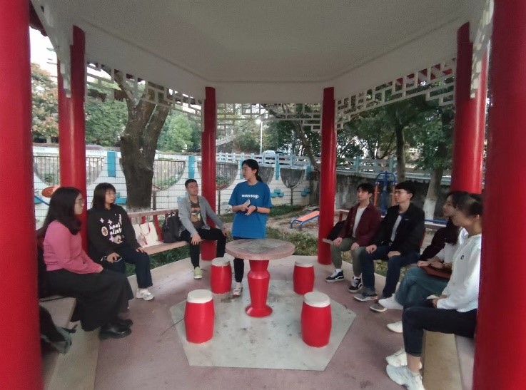 为深入学习宣传党的二十大精神,用身边人讲身边事,用身边事教育身边人,2022年11月9日下午6时,2022级知识产权法律硕士党支部于水上教学楼旁小亭内开展“一课一片一实践”集中宣讲主题党日活动,本次党日活动由支部书记蒋涵主持,2022级知识产权法律硕士党支部全体成员参加。