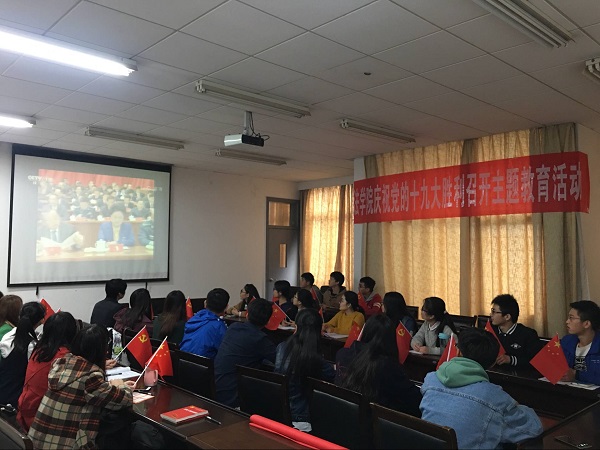 党委组织全体教工党支部书记、学生党总支委员、教工和学生党员代表观看十九大开幕盛况。分团委、学生会和本科生2014、2015、2016级联合党支部联合组织党员代表、入党积极分子代表、学生干部收看十九大开幕盛况,聆听并热议习近平总书记报告。