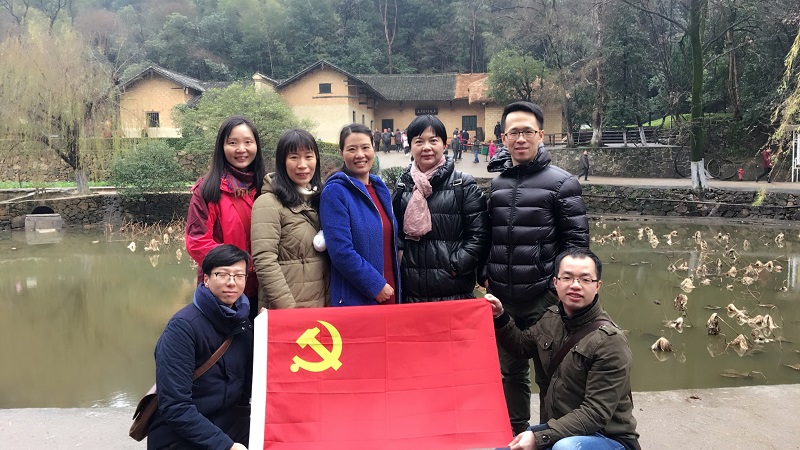 来到韶山的毛泽东故居,支部一行人在参观纪念的过程中进一步践行党的科学理论和思想观念。青塘残荷,水波不兴,木桌斑驳,土坯参差,看着前辈先贤在朴素简单的生活环境下坚持着斗争和学习,成员们更加深刻地认识到在当今社会环境下,要牢记党的性质宗旨,不断提高党性修养,增进科学文化素养的同时也要不断学习,注重加强自身的思想道德修养。同时,也应当怀有忧患意识,时时反思,做好批评与自我批评。在毛主席铜像前,支部敬献了花篮,并在铜像下面对党旗重温入党誓词,“无论在什么时候,我们都应当牢记党员责任使命,在今后的工作学习生活中不断增强“四个意识”,支部要更好地发挥基层党组织的战斗堡垒作用,我们党员个人也要积极主动地发挥先锋模范作用。” 支部成员李释然有感而发道。