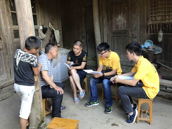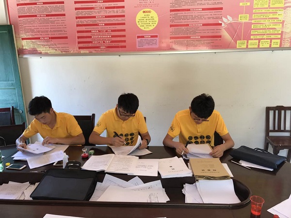 7月21日,同学们在团委书记杨凯老师的带领下进驻大屋瑶族乡大屋村。进入大屋村的第一天,师生与当地驻村工作队和村干部开展了耐心细致的座谈,大屋村有多少贫困户,每一位贫困户家中有多少人,每一个贫困户因为什么原因致贫,政府又采取了什么具体帮扶举措,调研团在村干部的介绍下对整个大屋村的基本情况有了较为详细的了解。接着,师生在驻村工作队和村干部的带领下走访贫困户。“您的主要收入来源有什么?您感觉脱贫前后自己的生活最大的变化是什么?您对政府的扶贫工作还有哪些意见和建议?”调研团真诚的问候得到的是老乡们发自内心而亲切的回答。群众们普遍对政府的扶贫工作表示满意,并提出了诸如加大对产业发展扶持力度、拓宽土特产等农产品销售市场、改善山村地区交通环境、降低医疗报销门槛等意见和建议。24日下午和25日,师生用一天半的时间帮助当地完善了64户建档立卡户的扶贫档案,对每一个细节都仔细检查,发现问题及时与村干部沟通并修正,高质量的完成了大屋村精准扶贫脱贫攻坚作战图。在调研团工作期间,大屋瑶族乡党委书记胡文伟等领导前往大屋村看望和慰问调研团师生,对调研团在大屋村的工作表示赞赏和肯定。带队老师、五楼自拍