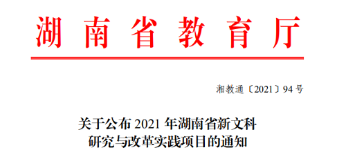 近期,湖南省教育厅公布了2021 年湖南省新文科研究与改革实践项目,五楼自拍