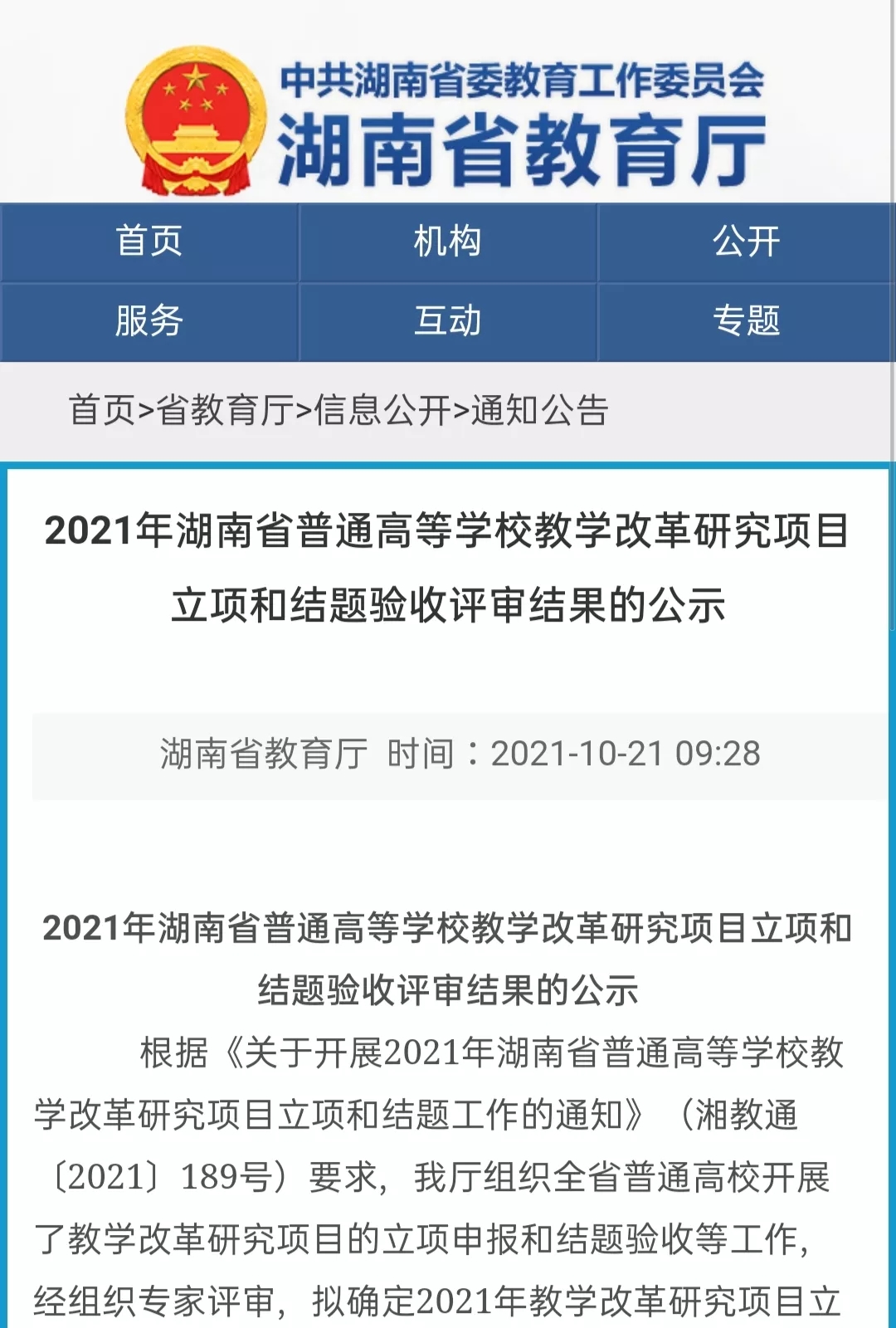 近日,湖南省教育厅公布了2021年湖南省高校教学改革研究项目立项名单。五楼自拍
