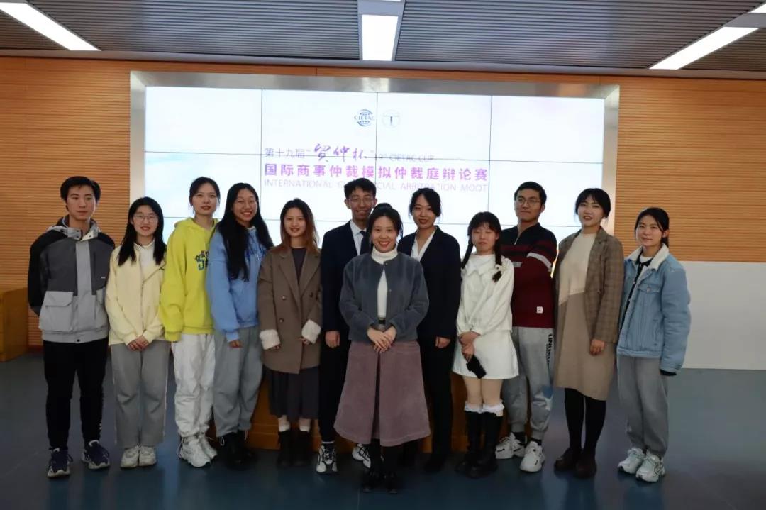 “贸仲杯”由中国国际经济贸易仲裁委员会(CIETAC)组织举办,自2000年创办已经成功举办了十九届比赛。“贸仲杯”以促进中国国际化仲裁法律人才培养为宗旨,通过同步引入国际赛题、模拟实战等方式,扩大仲裁法律制度的影响,提升我国青年学子的国际法律素养和仲裁实战能力。它既是Willem C. Vis Moot国际商事仲裁模拟仲裁庭辩论赛(“Vis Moot”)的国内选拔赛,也是Vis Moot认可的全球首场赛前赛,使用与Vis Moot相同的案例与仲裁规则,比赛语言为英文。值得一提的是,来自75所国内外高校的700余名选手报名参与本届“贸仲杯”,首次吸引了来自英国、马来西亚、乌兹别克斯坦等多个国家的院校报名参赛,在国际化程度上迈上新台阶。这不仅有利于彰显国际法律文化传播的使命和功能,也为国内外精尖法律人才创造了切磋、沟通的机会。参赛选手模拟仲裁案件中申请人和被申请人的角色参与仲裁庭开庭审理的各环节。比赛中,双方根据模拟的案情进行陈述、答辩和辩论,并回答仲裁庭提出的问题。比赛采用模拟商事仲裁中提交书面文件与开庭审理的形式,突出理论与实务的结合,对于在校五楼自拍