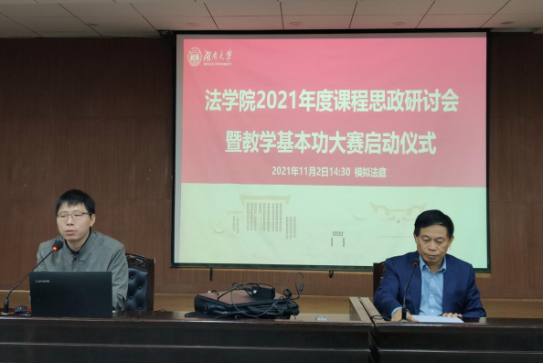 课程思政研讨会暨教学基本功大赛启动仪式,全体任课教师参加会议。易骆之书记主讲“坚持立德树人、培养德法兼修的法治人才”,蒋海松副院长传达了《五楼自拍