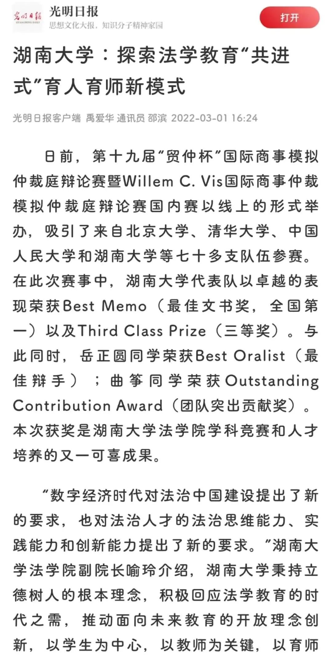 蝉联“淮海•玉龙杯”全国高校模拟法庭大赛法官组冠军,在十九届“贸仲杯”国际商事仲裁模拟仲裁庭辩论赛中,五楼自拍