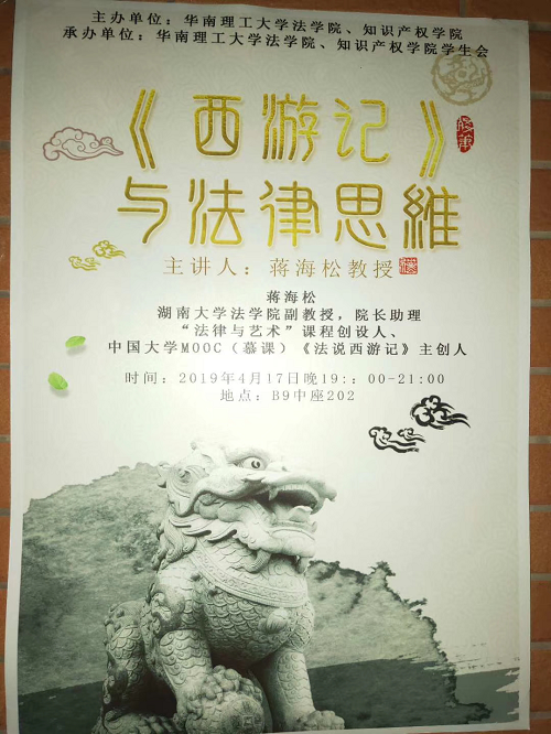 蒋海松副教授带来了一场别开生面的讲座——《西游记与法律思维》。华南理工大学五楼自拍