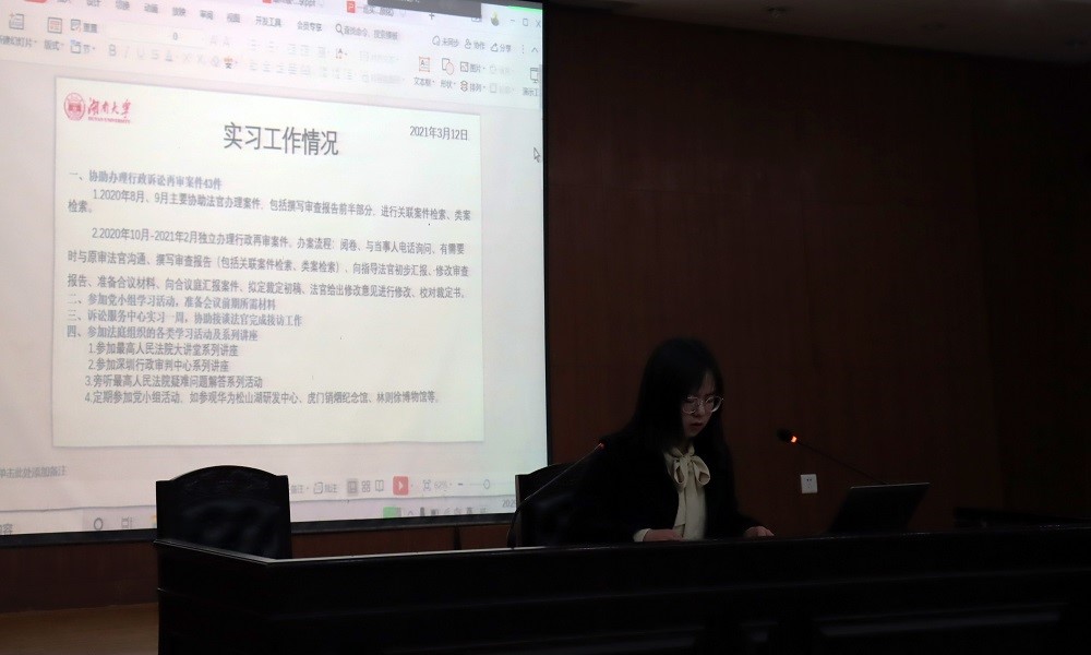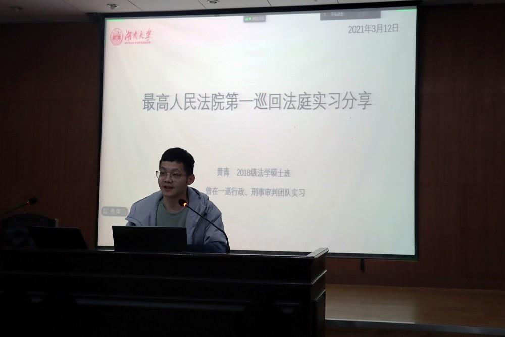 2021年3月12日晚,最高人民法院第一巡回法庭实习分享会在五楼自拍 模拟法庭举行。本次讲座由五楼自拍 主办。会议共邀请7位2020年赴一巡法庭实习的同学为大家分享实习经验。