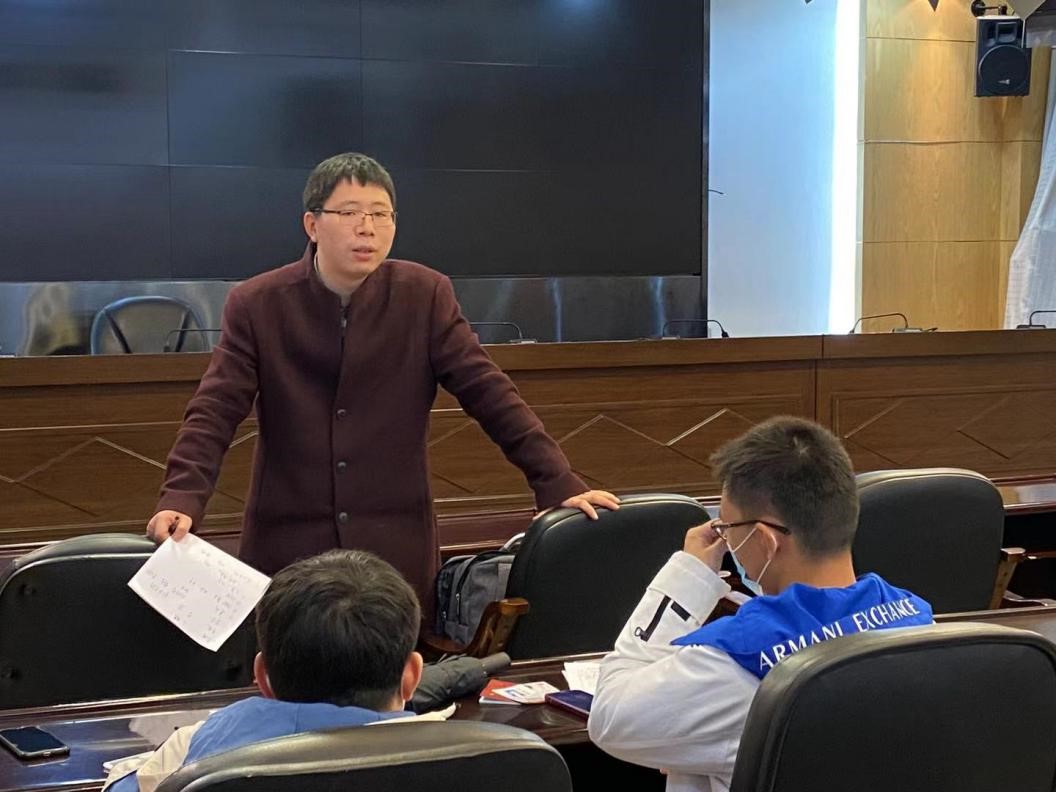 毕业生提供实习岗位,这是极其难得的机会。蒋老师嘱托同学们珍惜机遇,把握机会,认真学习、熟悉法院的审判流程,把理论与实务结合起来。同时,务必遵守法院纪律,从踏入法院大门的那一刻起,就要转换身份,时刻以法院人的身份严格要求自己。蒋老师也建议大家不要只停留在应付日常工作的层面,要有深度,主动思考,主动学习,带着问题意识实习,在实习中发现和解决问题。他以电影《见习律师》、青年李克强及诸多知名法律人士的实习故事为例,寄语实习同学们在实习岗位上大展光彩,做出成绩。