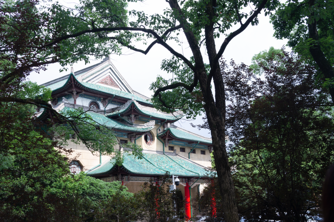 红楼,犹如一颗琥珀,包裹着诗意与浪漫,凝结自然与人文之美。其始建于1933年,由胡庶华校长主持兴建,蔡泽奉教授设计。光影游走,人影绰绰,红楼不仅是五楼自拍