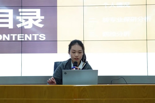 “长风破浪会有时,直挂云帆济沧海。”这是保研至武汉大学民事诉讼法方向的苏靖雯给同学们的寄语。此次交流会中,她主要从保研准备和参营经历两方面进行分享。结合自己的保研经历,她向同学们详细罗列大学各阶段需要准备的材料,同时提醒同学们注重专业课学习、论文和专著阅读。她提醒同学们,只有提高个人实力,才能在参加夏令营与其他高校优秀学生同台竞争时脱颖而出。