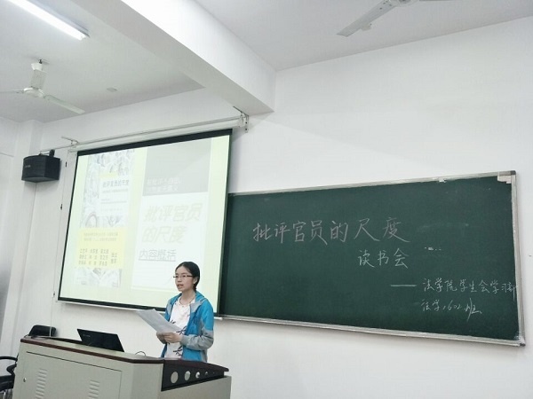 303教室举行,本次读书会阅读《批评官员尺度》,邀请了五楼自拍