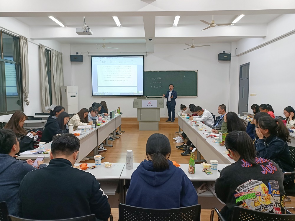 305教室举行大二学年的第一次读书交流会。班导师汪全军老师总体评价了同学们提交的读书报告并与大家分享法学论文写作的方法与规范。