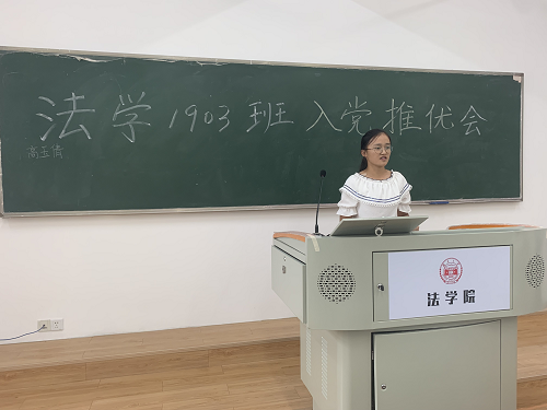 高玉倩向在场同学讲述了党的发展史以及她眼中的党,表达对党的尊敬与热爱,她热切希望加入中国共产党,接受党的领导和教育,成为一名有益于国家有益于人民的新时代青年。夏璐佳向在场同学介绍她故乡武汉的许多红色景点,她感叹毛主席的诗句透露出铮铮铁骨的气概与心怀天下的情怀,也正是这样的诗句让她有热切加入中国共产党的愿望,她希望自己能够向主席学习,能够有忧国忧民的情怀。宋兵兵讲述自己的小家与党的故事,她表示,正是在党的领导下,她家庭的物质生活和精神生活都实现了大跨步,她对党怀有感恩之心,也希望能够为中国共产党献出自己的力量,她愿意把这份感恩化为日后为党和人民服务的动力。王小丫提到,在她的家乡鄂尔多斯市,党员带领群众治理毛乌素沙漠,在治沙活动中,她感受到党带给人民群众的力量,同时,党也成为人民群众的信仰,她愿意加入中国共产党,接受党的领导。刘煜晗讲述她与党员爷爷看红色系列电影并引起内心触动,决心加入中国共产党,她表示,愿意花更多的时间去了解党,去参与到党为人民服务的活动中去。