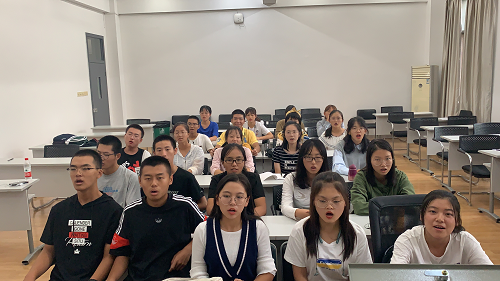 在推优大会结束后,班级继续召开“爱国奋斗正当时,建功立业新时代”主题班会。班会伊始,全体学生观看视频《我们走在大路上》,感受祖国的繁荣富强,随后,张思同学带领大家齐唱《我和我的祖国》,表达班级同学对祖国的浓厚感情。