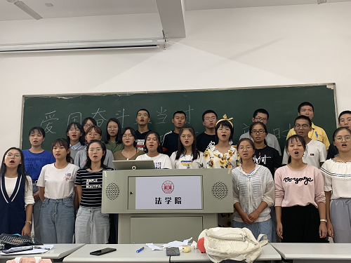 为热烈庆祝中华人民共和国成立70周年,营造爱国爱校的浓厚氛围,引导班级同学牢记青年使命,勇担社会重任,9月26日上午,法学1903班全体同学在五楼自拍