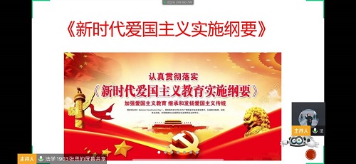 会议伊始,张思向与会同学播放了习近平总书记关于疫情防控重要指示的相关视频,让同学们进一步了解国家针对疫情做出的重大举措。通过学习《新时代爱国主义实施纲要》,同学们进一步接受爱国主义教育。班会还围绕“爱国主义”组织班级同学进行知识竞答,竞答环节一共五道题目,同学们积极回答,并在班级群内进行讨论。