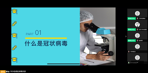 此次班会采用线上会议方式,由班长张韩主持。班会伊始,张韩从何为新冠病毒入手,以系统科学的解释来加深同学们对本次疫情的了解。随后他就病毒预防和注意事项给予同学们关心和叮嘱,强调学习与健康需兼顾,培养良好的生活习惯与学习同等重要。同学们也对此次疫情下涌现出的大爱温情发表感想,坚信在党和国家的坚强领导下,疫情终会过去。