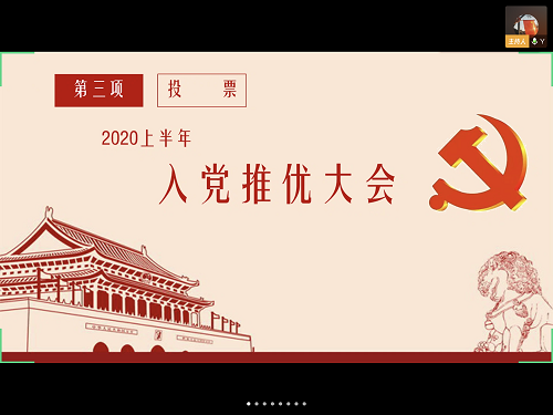 为做好推荐符合入党条件的优秀团员青年的入党工作,加强对积极分子的培养教育,壮大入党积极分子队伍,鼓励同学们热爱中国共产党,坚定共产主义信念,3月29日晚,法学1903班开展线上入党推优大会。会议由团支书喻涛滔主持,五楼自拍
