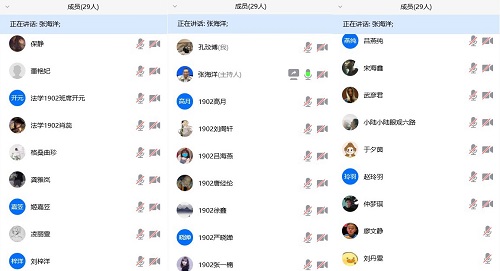 此次班会由文娱委员张海洋主持,法学1902班全体同学参加此次会议。会议伊始,张海洋同学通过屏幕共享组织全班同学们在“平安五楼自拍