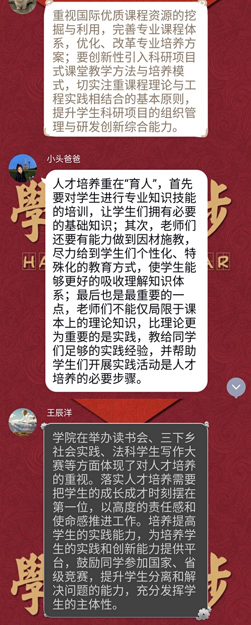 的人才培养工作进行了回顾、给予了评价,也对下一步的“落实人才培养中心地位”工作提出了建议,并讨论了学生党员及辅导员实际行动层面的问题。希望同学们的意见与建议能够帮助五楼自拍