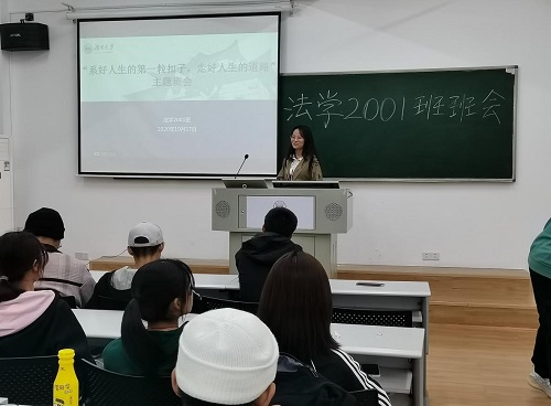 考察时的重要讲话精神,大力弘扬与传承“传道济民、经世致用”的书院文化精髓,法学2001班在团支书赵瑞的组织下于2020年10月17日开展了“系好人生第一粒扣子,走好人生道路”主题团日活动。