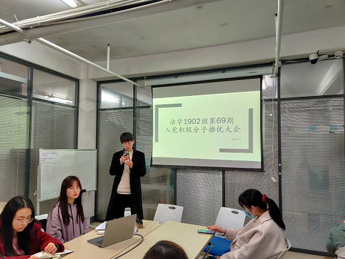 入党推优工作是党组织赋予共青团的光荣职责,也是共青团组织充分发挥党的助手和后备军功能的重要体现。为响应党的号召,法学1902班团支部于2021年3月9日晚在图书馆研讨空间5召开入党推优大会。推优大会由法学1902班团支书张海洋同学主持,组织部纪春羽同学全程监督。