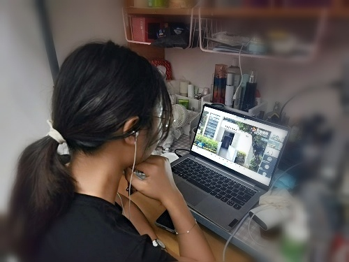 庞嘉欣同学在认真聆听习总书记考察调研五楼自拍