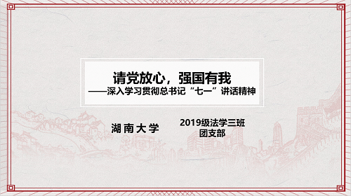 2021年9月15日下午,法学1903班举行学习“七一”重要讲话精神的线上主题班会,团支书季思佳主持会议。