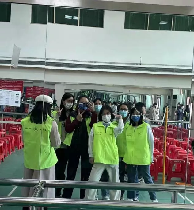 候诊区的志愿者主要负责在形体房内协助校医院老师、指导受种同学和老师按照指引登录系统填报接种信息、在形体房出口处检查将受种者是否已生成条形码。预检区的志愿者则负责在体育馆大厅入口处维持秩序、控制受种者入场、测温并提醒受种者佩戴口罩。